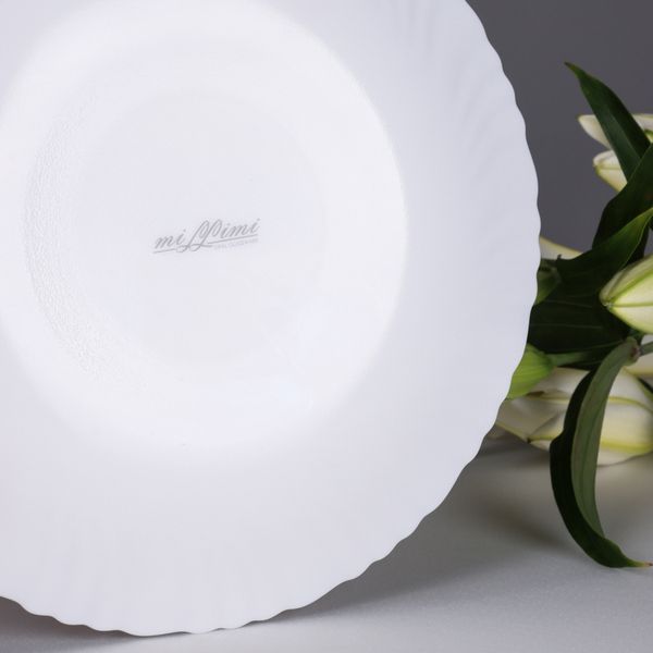 Millimi Роселла Тарелка подстановочная 24см, опаловое стекло. Опаловое стекло (ударопрочность), не боится царапин от вилок, ножей, пригодно для микроволновых печей и мытья в посудомоечных машинах, жаропрочность до 125˚C.