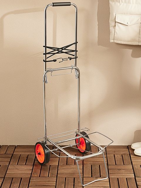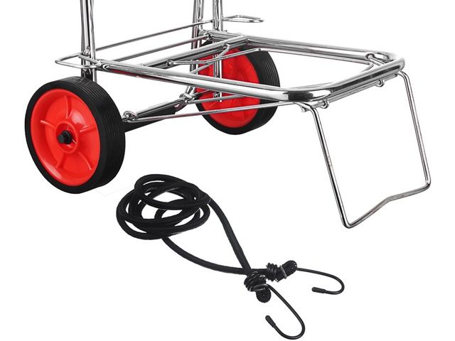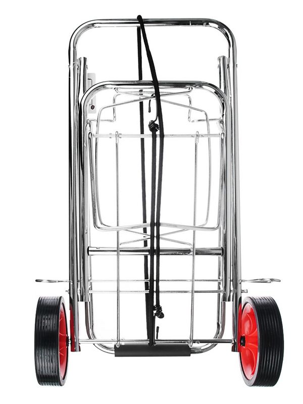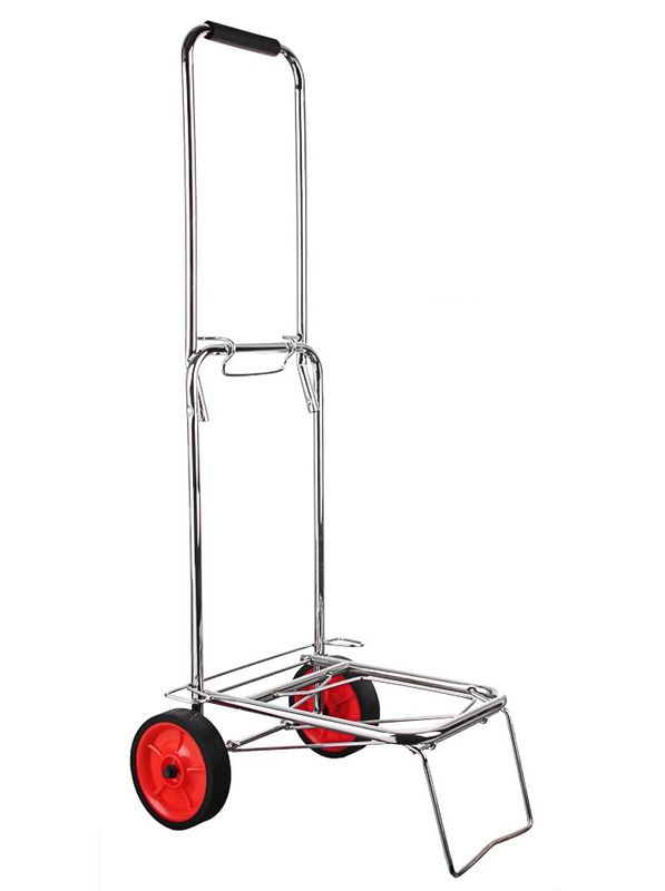 Она предназначена для перевозки различных грузов: чемоданов, коробок. Она поможет легко и удобно транспортировать предметы, не перегружая при этом руки, может использоваться как тележка для продуктов, тележка строительная, садовая, грузовая или для переезда. Хозяйственные тележка сделана из прочного металла. Колеса пластиковые 14 см.