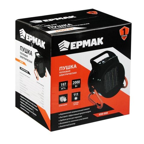ЕРМАК Тепловая пушка электрическая 2кВт, 185М3, 1720ккал/ч, 3 реж (0,03/1/ 2кВт) керамический нагреватель.
