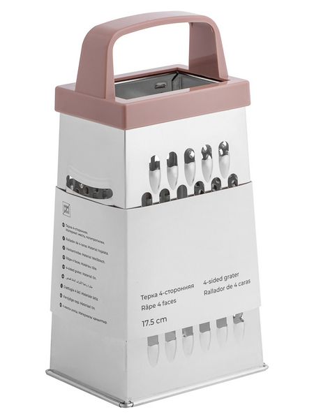 Четырехсторонняя терка с пластиковой ручкой станет незаменимым помощником на вашей кухне, благодаря своей универсальности и компактному размеру. Ее размеры составляют 17,5 см и она изготовлена из жести, что обеспечивает ее прочность и долгий срок службы.