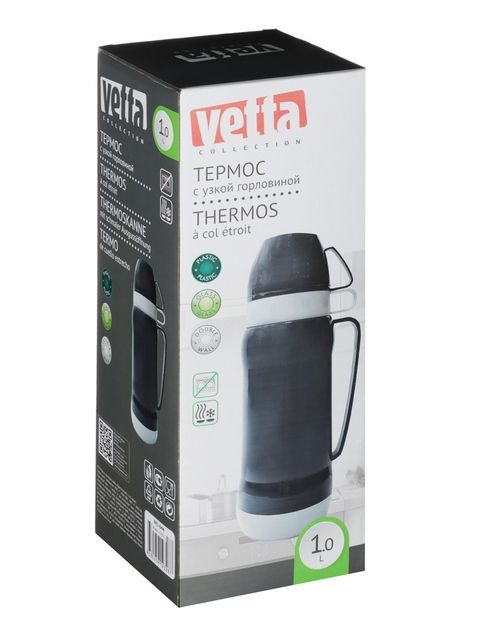 Vetta Термос 1,0л со стеклянной колбой, пластиковый корпус, 2 чашки.