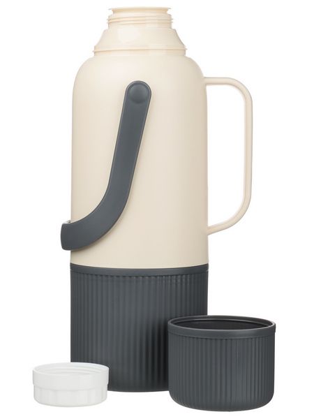 Оснащен удобной ручкой для переноски, а также имеет дополнительную ручку для комфортного розлива напитков. Стеклянная колба не впитывает запахи и сохраняет чистый вкус напитков. Термос сохраняет напитки горячими до 10 часов, холодными – до 8 часов. Корпус из полипропилена надежно защищает колбу от повреждений, имеет тактильно приятную поверхность и стильный дизайн в бежевом цвете. Герметичная крышка предотвращает протекание жидкостей и дольше сохраняет тепло.