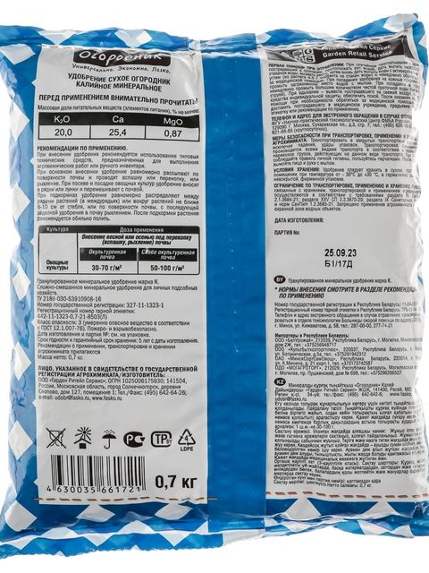 Читать все статьиУдобрение Калийное минеральное 0,7кг Фаско